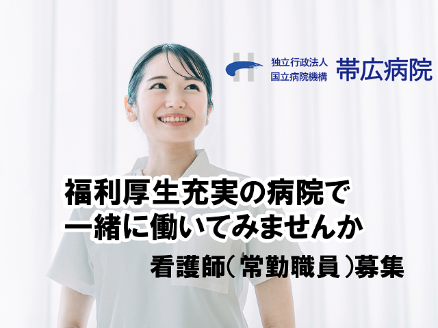 正 掲載終了まであと20日 国立病院機構帯広病院 看護師 福利厚生充実の病院で正職員の募集!働きやすい環境整えてお待ちしております! 月給 276,900円~315,600円 北海道帯広市西18条北2丁目16番地 保存 求人詳細