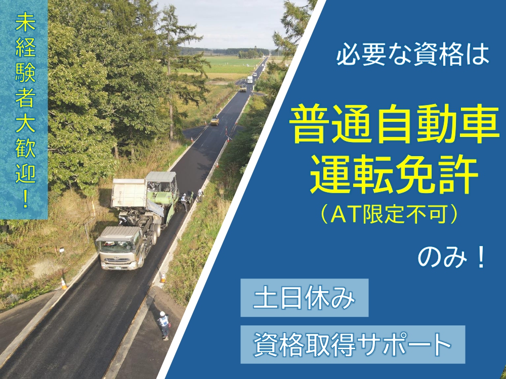 正 掲載終了まであと4日 北洋道路株式会社 札内事業所 現場技術者 未経験者大歓迎!資格取得もしっかりフォローします♪ 月給 240,000円~350,000円 中川郡幕別町字千住397-21 保存 求人詳細