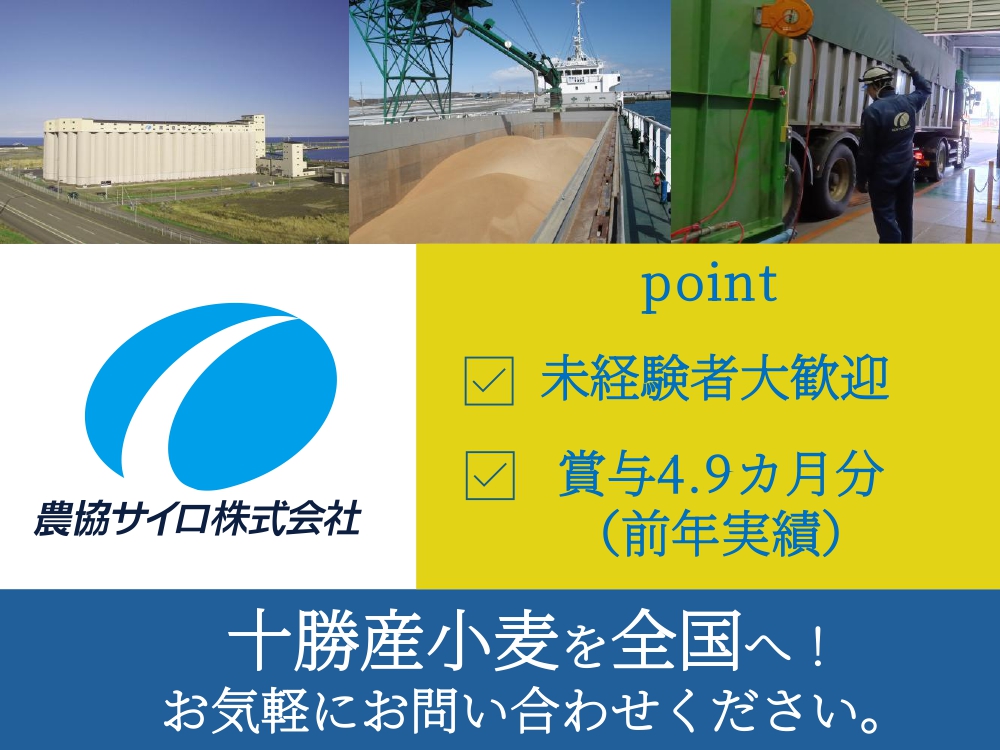 正 掲載終了まであと8日 農協サイロ株式会社 十勝港事業所 小麦受入・出荷ほか作業スタッフ 各種手当充実!事前の会社見学もできますよ♪ 月給 180,930円~ 広尾郡広尾町会所前5丁目10番地 保存 求人詳細